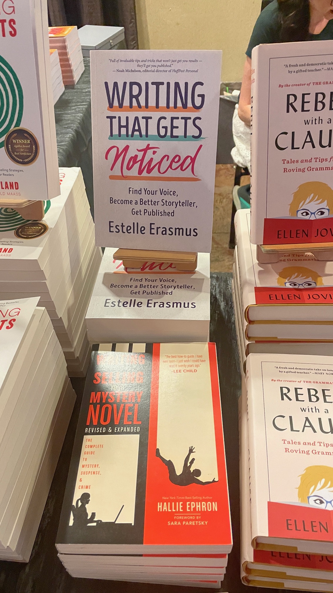 Loved meeting fellow speakers Paula Rizzo, a fellow Women’s Media Group member, as well as Bruce Holsinger, Jane Cleland, Hallie Ephron, and Chuck Wendig, with who I share a pub date. It was also fun to connect with former WD staffer Jess Zafarris.