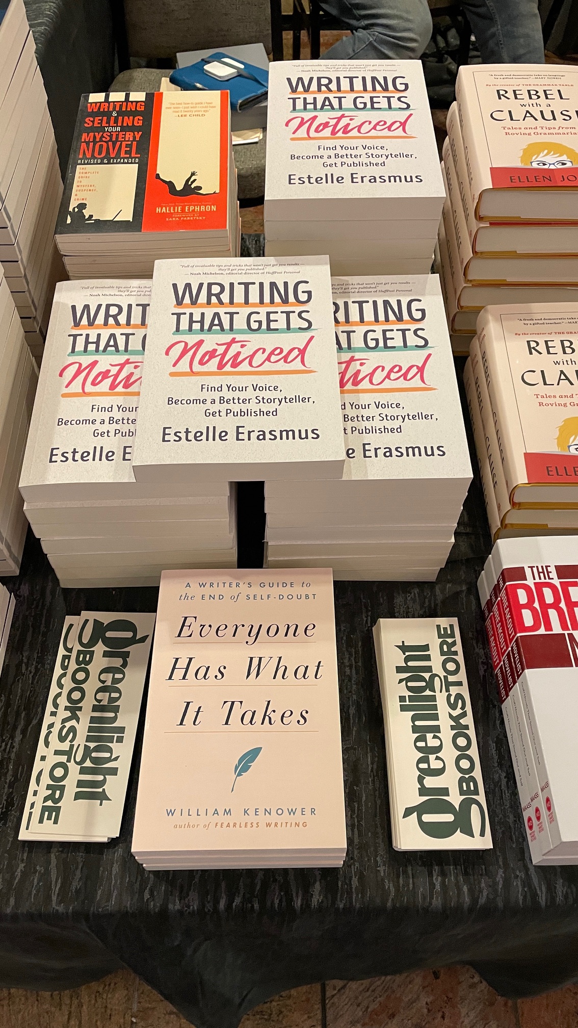 Thank you to Greenlight Books for your deft handling of the book sales, so I could do what I do at these conferences: teach, and sign books. The only glitch happened when I pulled my rotator shoulder cuff bringing down my suitcase from its perch on the the table. I’m doing physical therapy for it and it is improving. Lesson learned. Ask for help, if and when I need it.